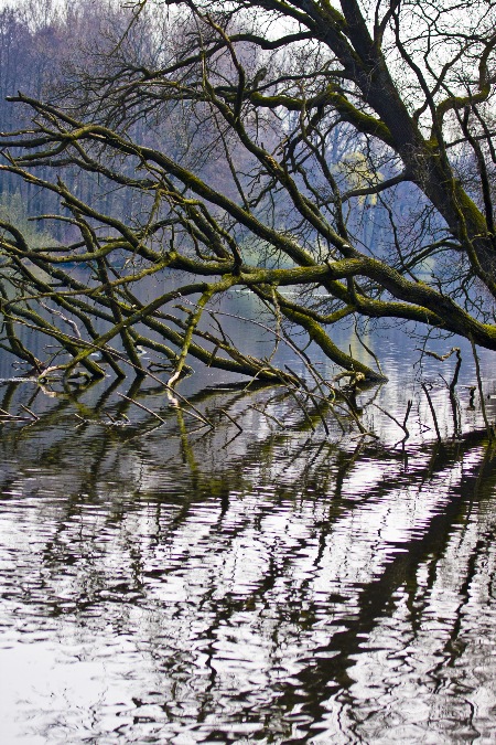 Kanada, Prince George, glasklares Wasser, der Baum ragt etwa 1,5m aus dem Wasser