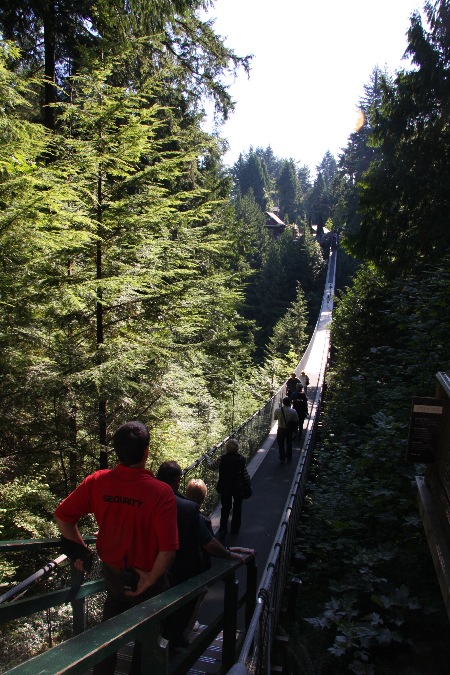 Kanada, Vancouver, über den Capilano River Canyon führt die 70m hohe und 137m lange Suspension Bridge und gehört zum 11 Hektar großen Park, benannt nach dem Squamish Häuptling Joseph Capilano.